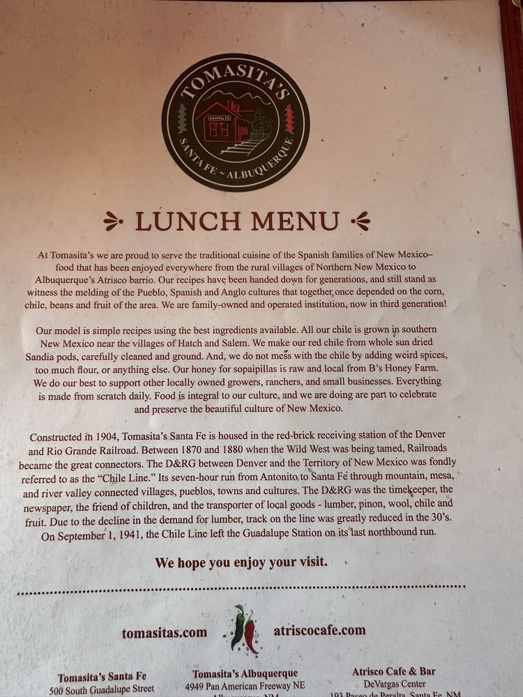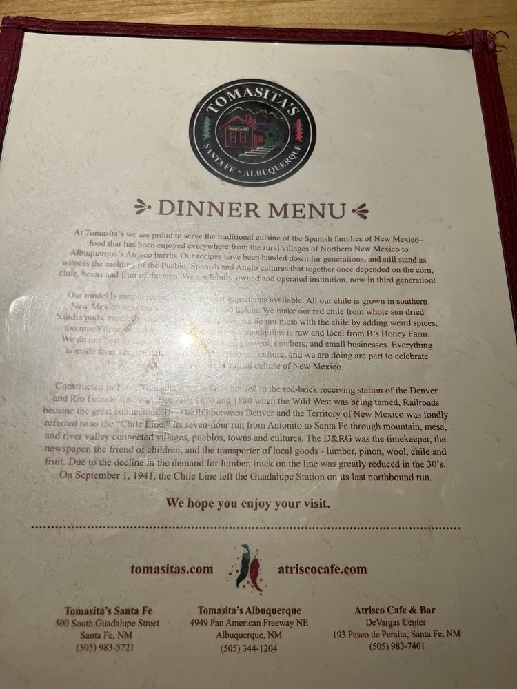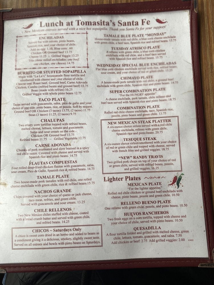 Tomasita's in Santa Fe, NM, is a beloved spot offering a variety of New Mexican cuisine. The menu boasts classic dishes like enchiladas, burritos, and combo plates that come with your choice of red or green chile. Customers rave about the flavorful food and generous portions at this family-owned restaurant. The cozy atmosphere and attentive service make dining at Tomasita's a delightful experience. With options for vegans and vegetarians, this restaurant caters to a diverse range of dietary preferences. Don't miss out on their signature dishes like the stuffed sopaipilla and queso with chips. Whether you're a local or just passing through, Tomasita's is a must-visit for authentic New Mexican flavors in a welcoming setting.
